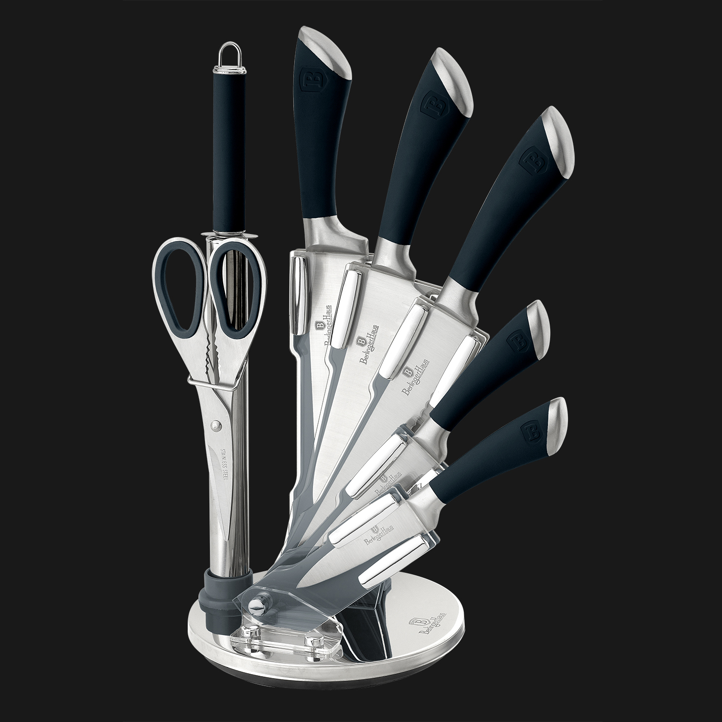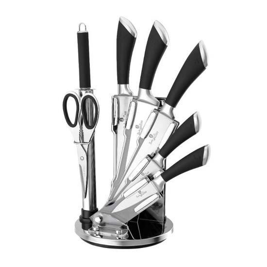 Đế nhựa acrylic xoay 360 độ – tiện lợi để cất giữ dao khi không sử dụng.