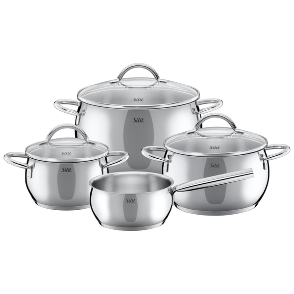 Bộ nồi Silit dùng được cho tất cả các loại bếp kể cả bếp từ, nồi bằng hợp kim quý không gỉ 18/10, rất đẹp. Vung kính chịu nhiệt bạn có thể nhìn thấy đồ ăn khi đang nấu. Miệng nồi được thiết kế đặc biệt để khi đổ nước ra không bị chảy tràn.