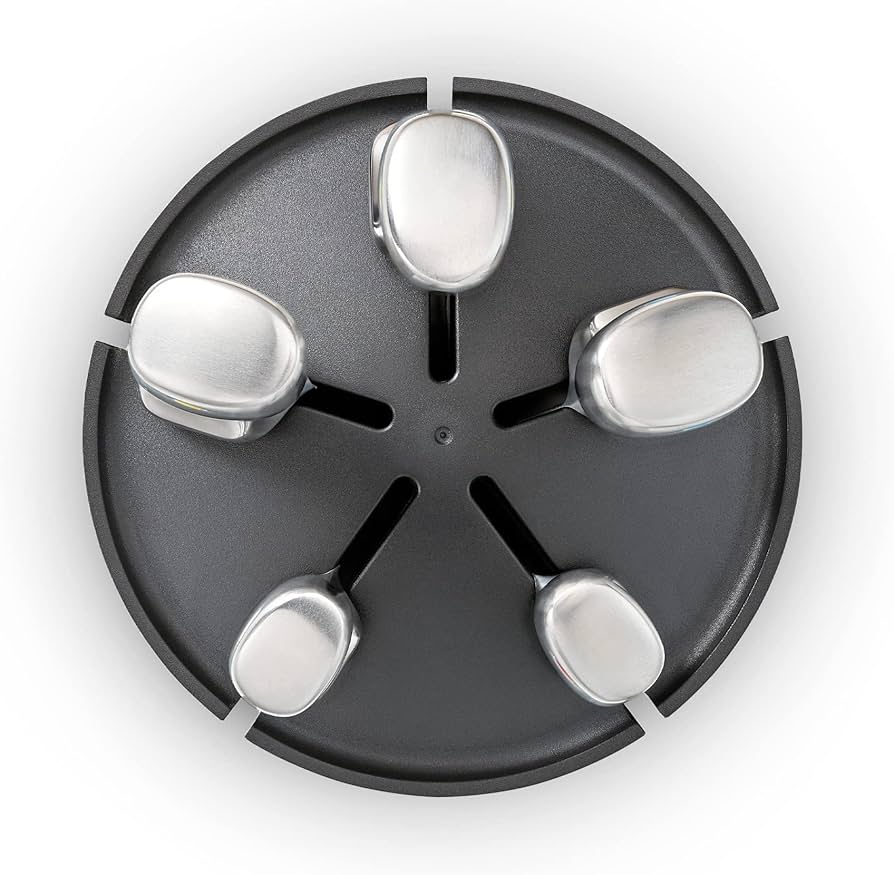 - Giá đỡ dao bằng thép không gỉ xoay được với các khe cắm dao từ tính dễ lấy.