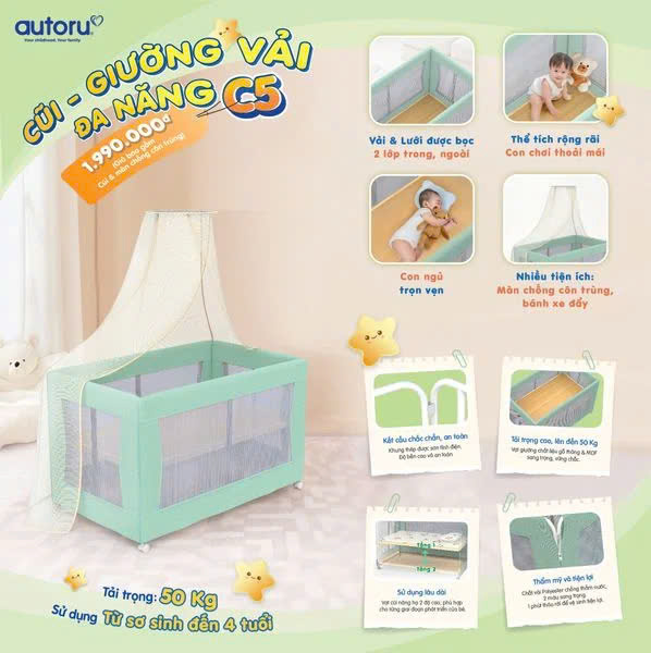 Sản phẩm cũi vải đa năng C5 với nhiều tính năng vừa làm cũi vừa làm giường có thể giúp bé sử dụng được lâu hơn. Sản phẩm cũi vải C5 giúp tiết kiệm cho gia đình nhưng quan trọng nhất là tất cả sản phẩm của Autoru được thiết kế chắc chắn và an toàn cho bé. Ba mẹ có thể xem thêm những sản phẩm cũi cho bé để có thể chọn được một sản phẩm phù hợp và hợp với tài chính nhà mình.