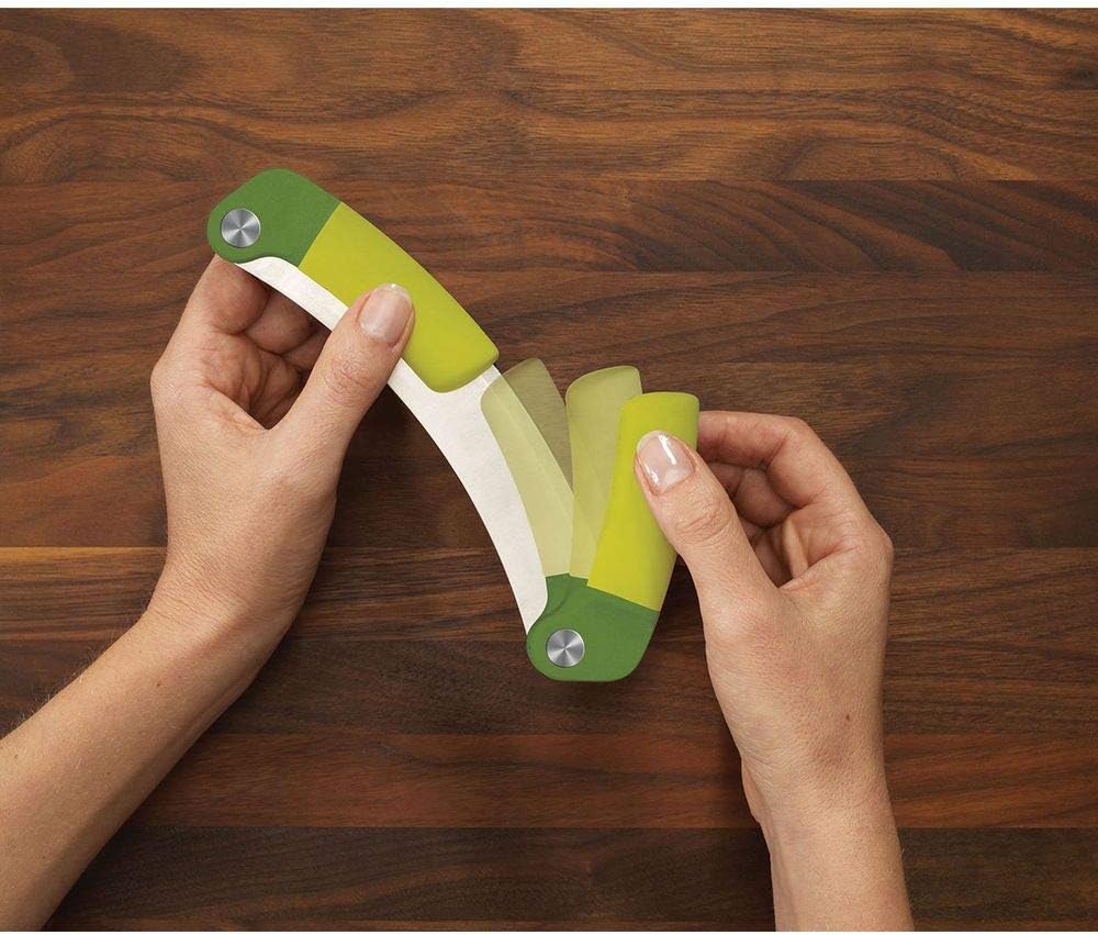 Tay cầm có thể gập lại trên lưỡi dao giúp nó nhỏ gọn và an toàn khi cất giữ