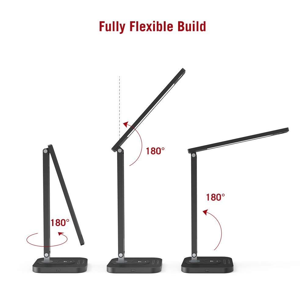Đèn bàn LED trang bị công nghệ RAVPower Hyper air để sạc nhanh các thiết bị iPhone và Samsung tương thích lên đến 7. 5W và 10W tương ứng