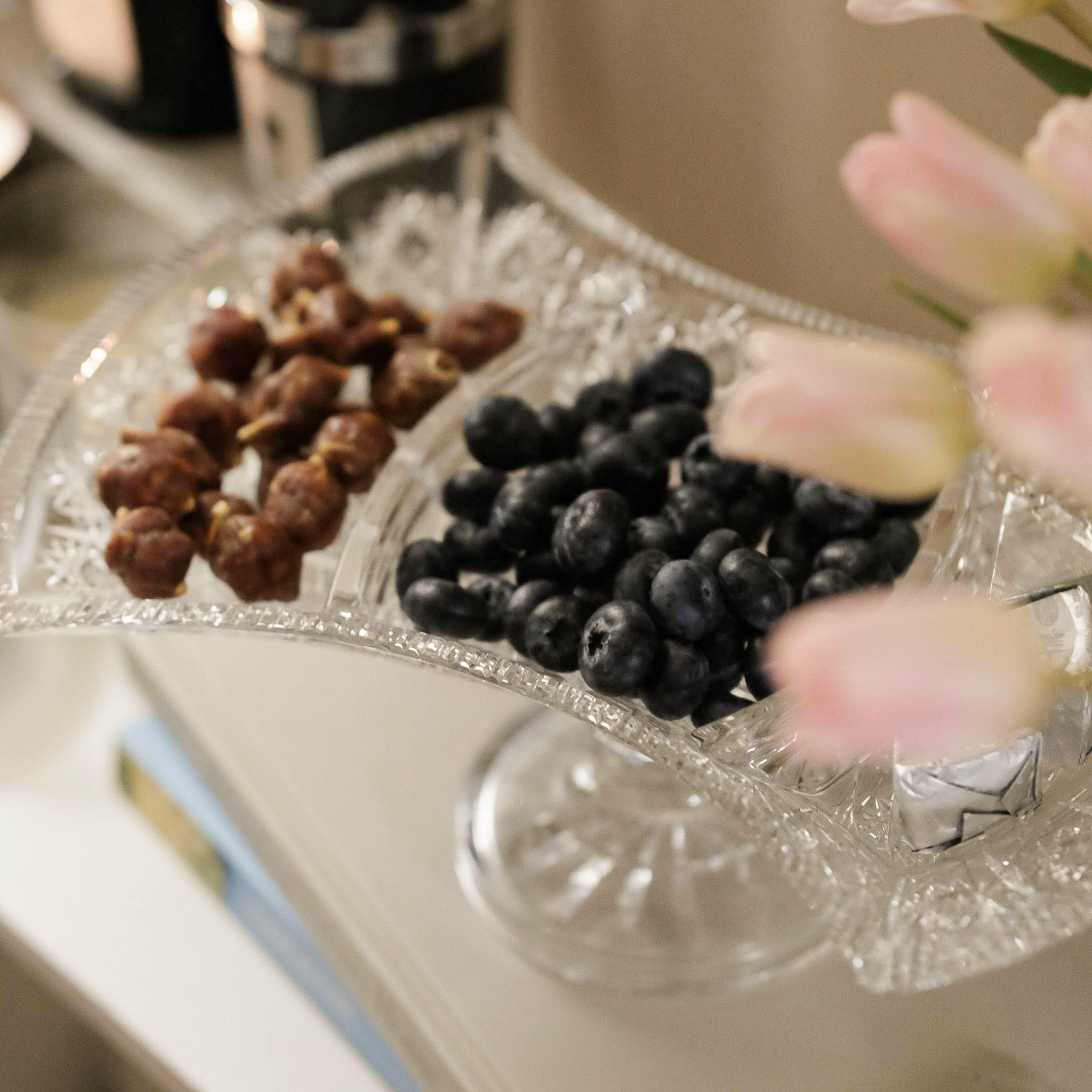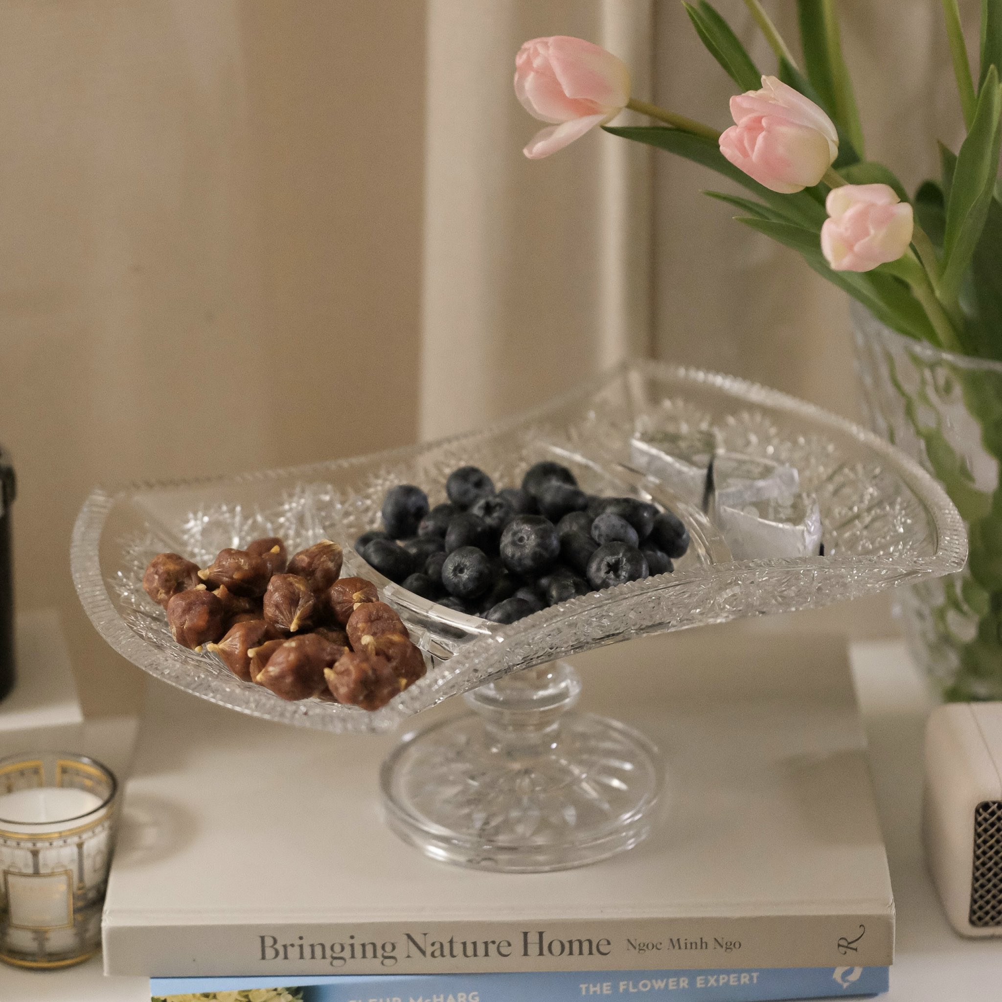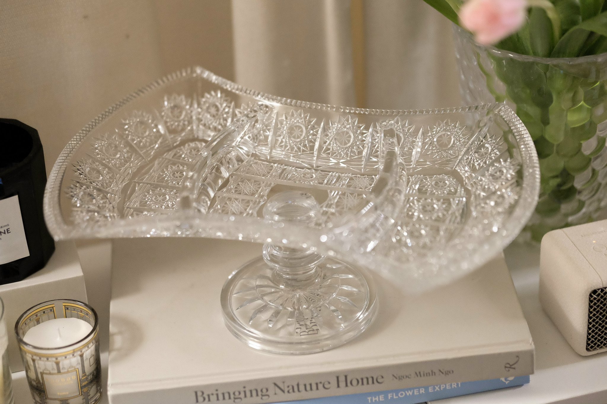 Thiết kế đẹp mắt hình eo. Có thể thả hoa, bày trái cây, bày món tráng miệng như chè, hoa quả thái miếng hoặc bày đồ ăn (salad, súp, hoặc nguyên cả con cá dài).