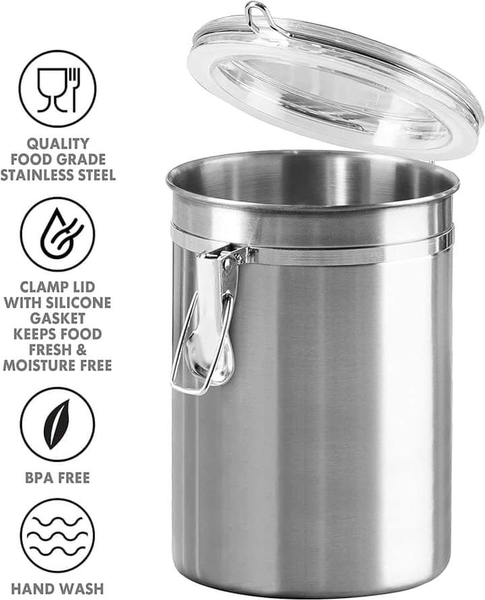 Hộp đựng cà phê Inox được thiết kế đặc biệt để cà phê tránh ánh sáng và độ ẩm, và do đó duy trì tất cả các hương vị của nó. Phần bổ sung nhỏ: một mặt số chỉ ngày được tích hợp vào vỏ . Bạn có thể ghi rõ ngày mua hoặc ngày hết hạn.