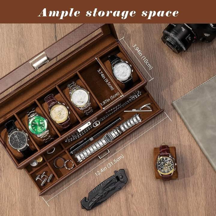 Lớp trên có thể chứa 6 đồng hồ và ngăn kéo phía dưới là nơi lưu trữ cho dây đeo đồng hồ, khuy măng sét, vòng tay, nhẫn, bút, dây chuyền và các đồ trang sức khác, giữ chúng ở một nơi và bảo vệ chúng khỏi ẩm ướt, rung lắc và ma sát, hoặc thiếu.