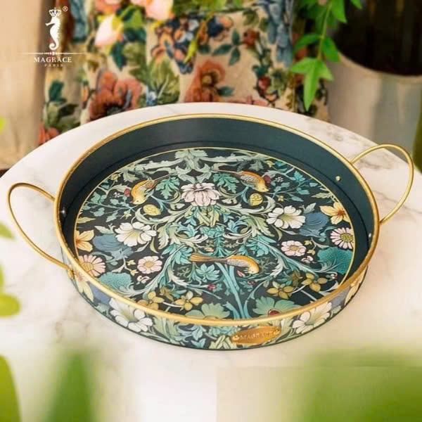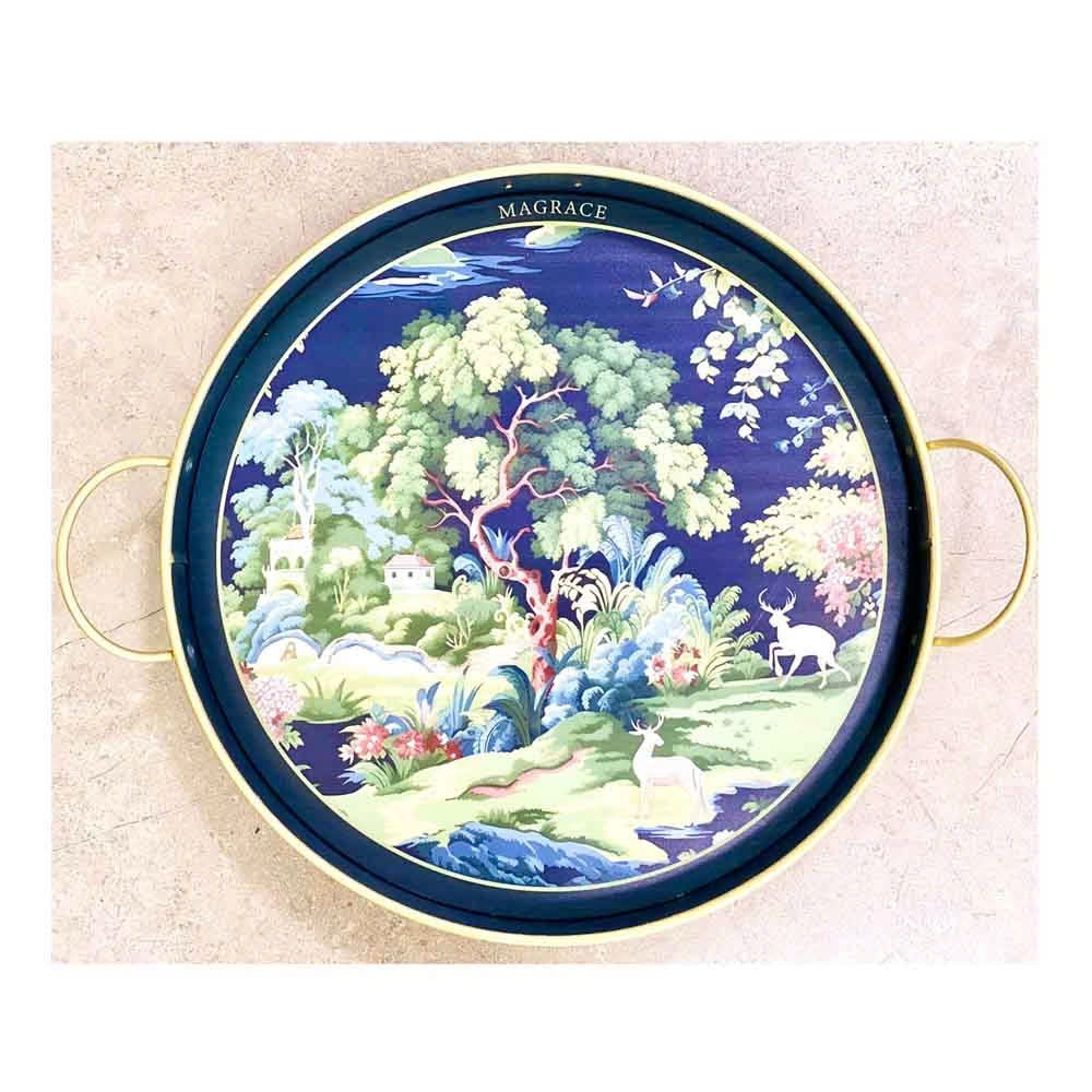 Khay đựng tròn có quai Magrace Paris họa tiết phong cảnh