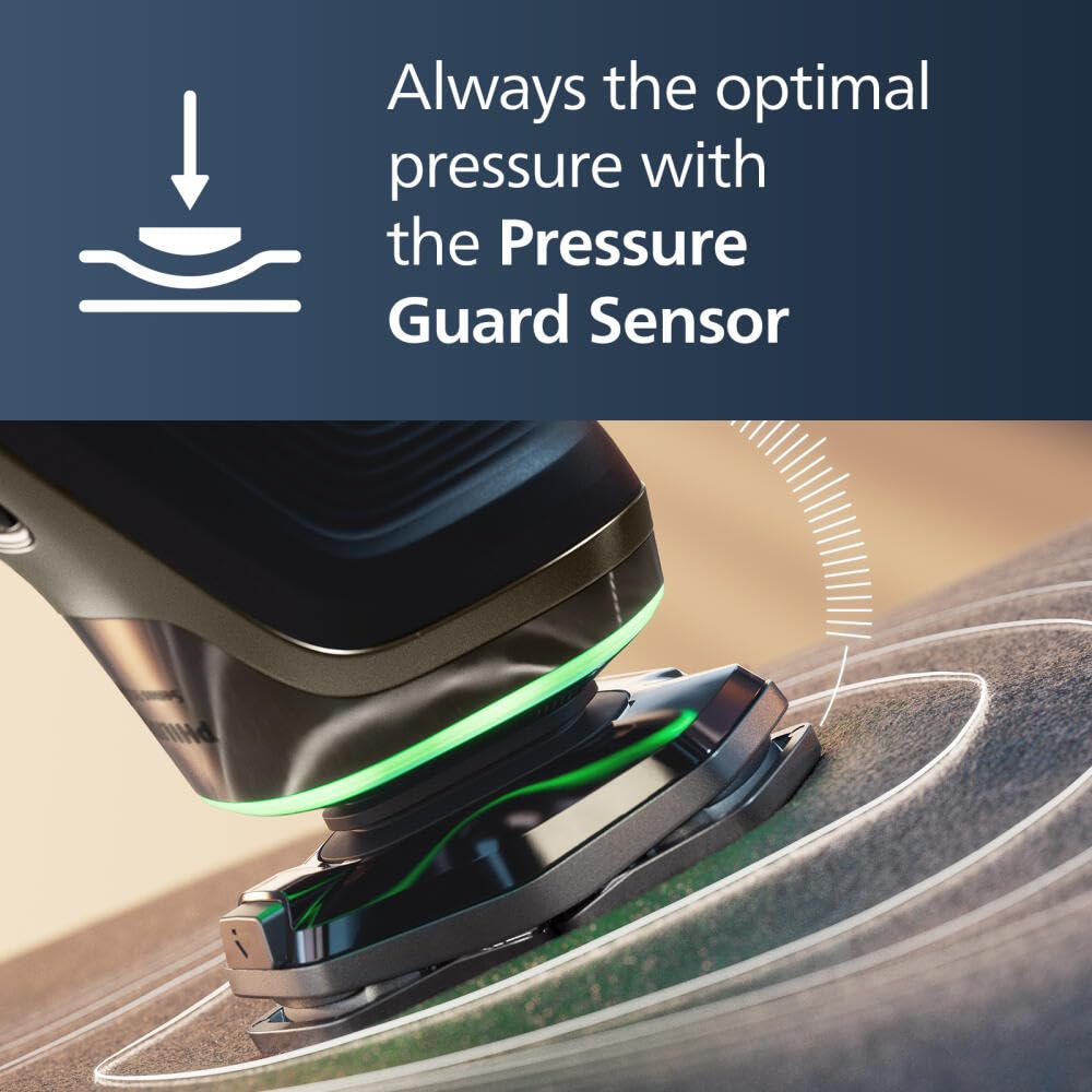 – Luôn có áp suất tối ưu: Cảm biến bảo vệ áp suất thông minh bảo vệ làn da của bạn và đèn sẽ hướng dẫn bạn khi bạn ấn máy cạo râu quá mạnh hoặc quá nhẹ