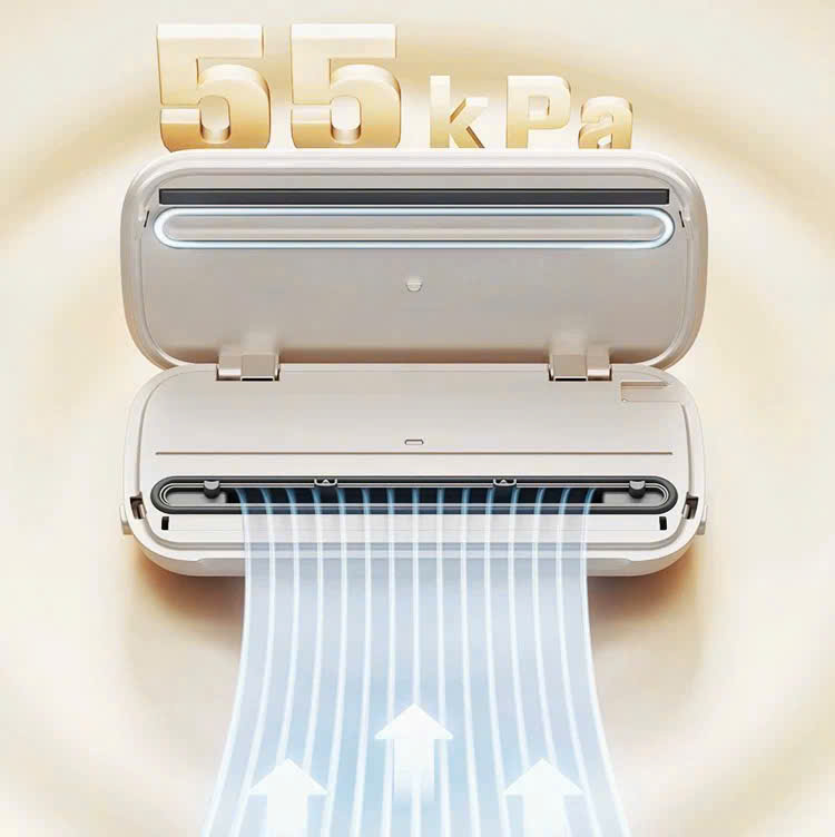TÍNH NĂNG NỔI BẬT 2 Động cơ bền bỉ,giúp máy có thể hoạt động liên tục mà không lo bị nóng máy,thích hợp cho khách hàng kinh doanh Máy tích hợp 2 động cơ siêu mạnh lực hút 55 KPA Chức năng thông minh tự động hàn miệng túi sau khi hút hết chân không bên trong. Có tích hợp chỗ chứa túi cuộn bên trong máy Có khay chứa nước có thể tháo rời,dễ dàng vệ sinh khi hút thực phẩm ẩm ướt