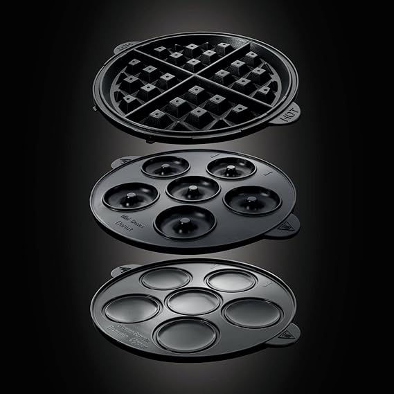 3 cặp đĩa: máy làm bánh quế (4 chiếc), đĩa để làm bánh rán (6 chiếc), đĩa để làm bánh nướng xốp (6 chiếc). Đĩa có lớp phủ chống dính. Có thể rửa trong máy rửa chén, đĩa có thể tháo rời với khóa tự động.
