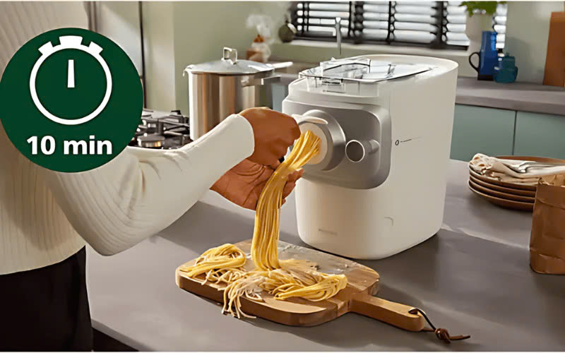 Máy có khả năng chuẩn bị 250g mì chỉ trong vòng chưa đầy 10 phút và trong một lần bạn có thể chuẩn bị tới 8 phần mì (khoảng 700g) cho cả gia đình và bạn bè. Điều này giúp bạn tiết kiệm thời gian và có thể nấu nướng một cách hiệu quả hơn.