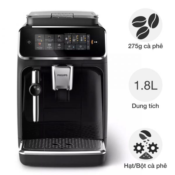 Philips EP3321/40 Series 3300 của thương hiệu nổi tiếng Hà Lan – Philips, sản xuất tại Rumani và nhập khẩu về Việt Nam từ Đức. Sản phẩm gây ấn tượng với thiết kế đầy sáng tạo của Ý, vẻ ngoài toát lên sự sang trọng, tinh tế đến từng chi tiết. Kết cấu gọn gàng dễ dàng di chuyển và bố trí trên kệ phòng bếp gia đình, khu vực pantry ở văn phòng,…