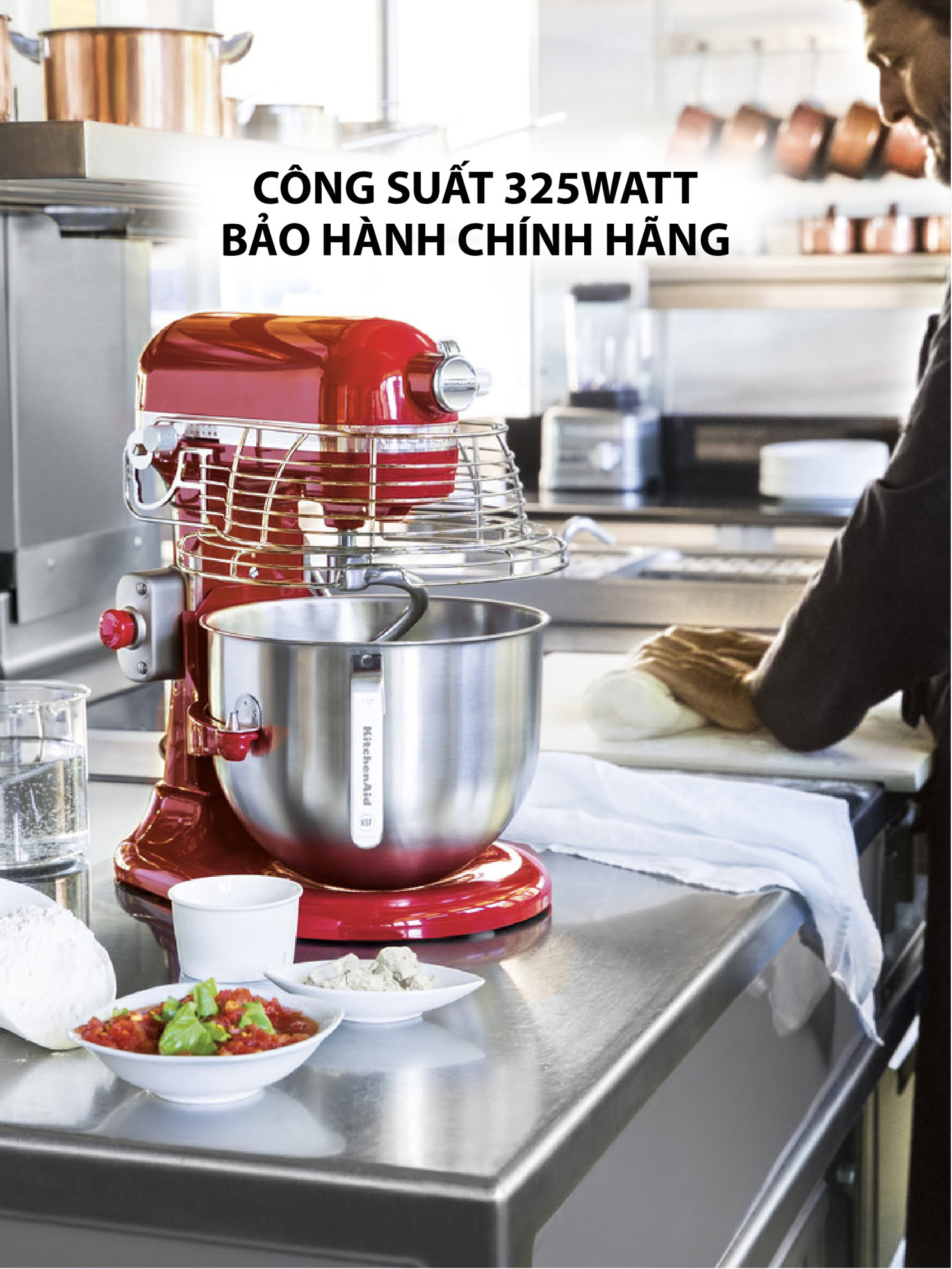 - Máy trộn bột có thể tương thích với hơn 14 phụ kiện đính kèm, phù hợp làm các món ăn như mì ống tươi, bánh mì kẹp thịt, mì chay...