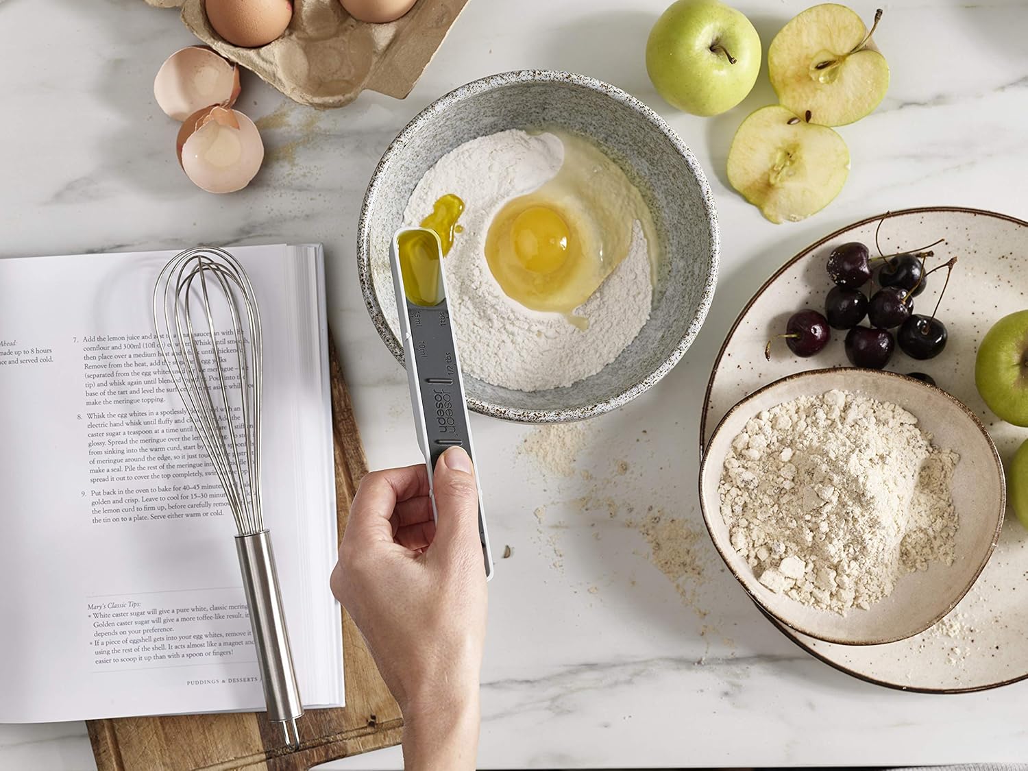 Đo lượng nguyên liệu khô từ ¼ thìa cà phê đến 1 thìa canh