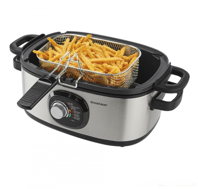Tiết kiệm diện tích trong căn bếp với Nồi đa năng SMKE 1500 A1 của SILVERCREST 6 chức năng trong 1: Nấu cháo nấu súp, hầm, chiên rán, hấp, nấu cơm, giữ nhiệt.
