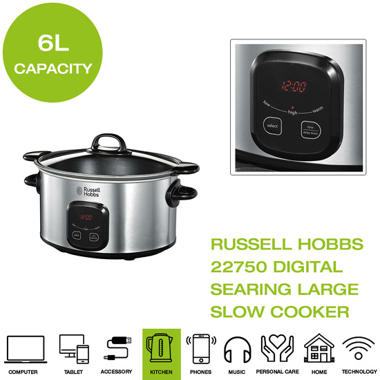 – Ưu điểm lớn của nồi nấu chậm Russell Hobbs là nồi bên trong có thể tháo rời sử dụng trên bếp gas hoặc bếp điện để đảo sơ qua thịt với hành trong bước đầu tiên chuẩn bị một món thịt nấu chậm. Không chỉ vậy, bạn có thể sử dụng nồi bên trong này để bày biện món ăn sau khi nấu xong.