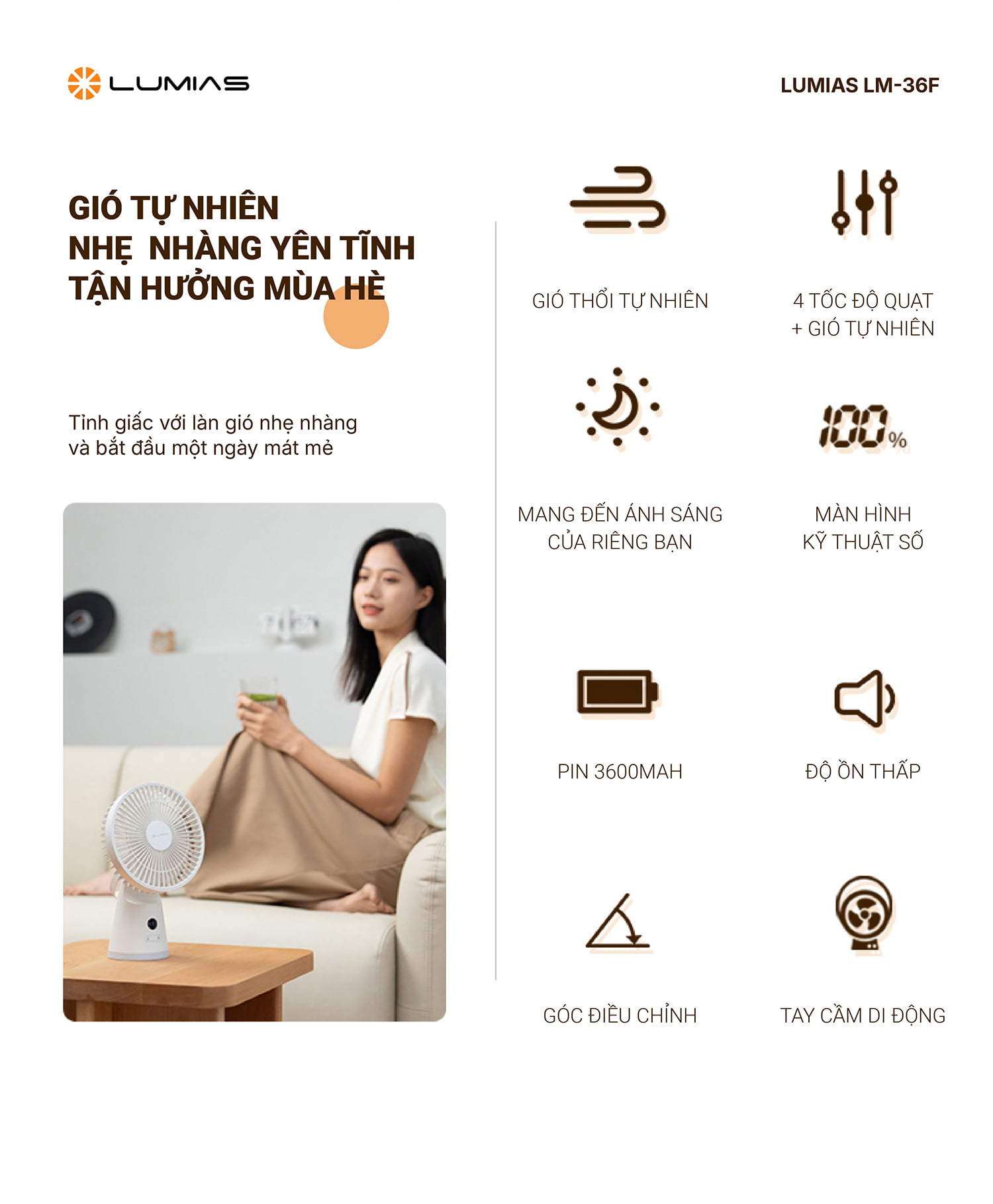 | Tên sản phẩm | Quạt để bàn Lumias LM-36F |