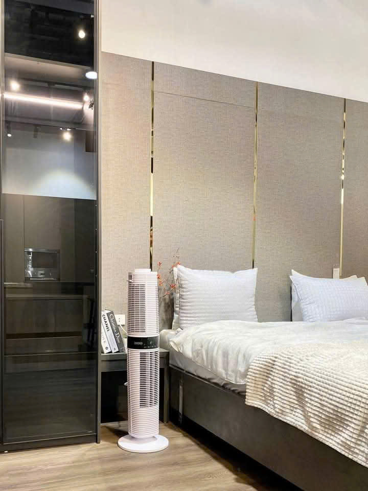 Điểm khác biệt vượt trội của Quạt Tháp Smart – Turmventilator 360 chính là công nghệ xoay 360 độ độc đáo. Thay vì chỉ tập trung gió một hướng, quạt nhẹ nhàng xoay tròn, phân bổ luồng gió mát đồng đều khắp không gian. Phòng khách rộng lớn, phòng bếp ấm nóng hay phòng ngủ cần sự yên tĩnh – mọi nơi trong ngôi nhà bạn đều được làm mát tối ưu. Không còn cảnh tranh nhau chỗ mát, cả gia đình cùng tận hưởng không khí dễ chịu, thoải mái.