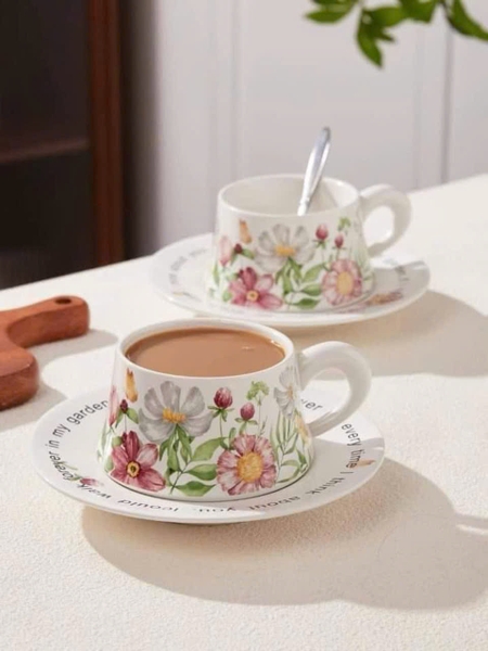 Kích thước: Tách dung tích 250ml đk 8,5x7cm; đĩa đk 16,5cm