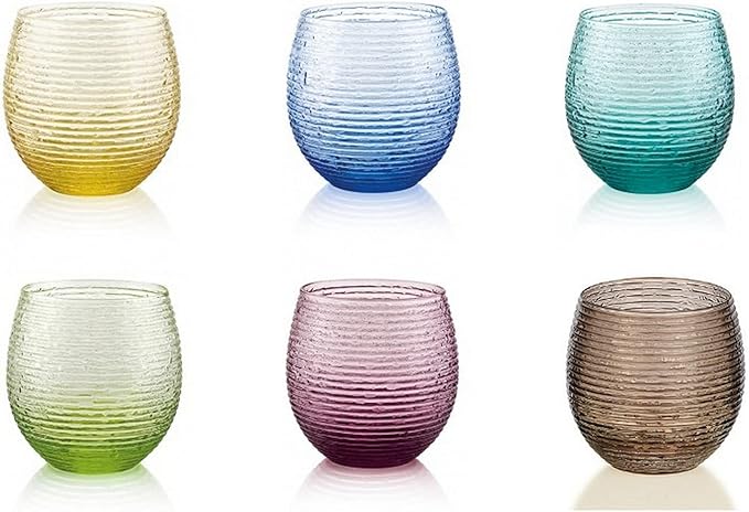 Bộ 6 cốc nước nhiều màu làm bằng thủy tinh trong suốt. Sức chứa: 250ml