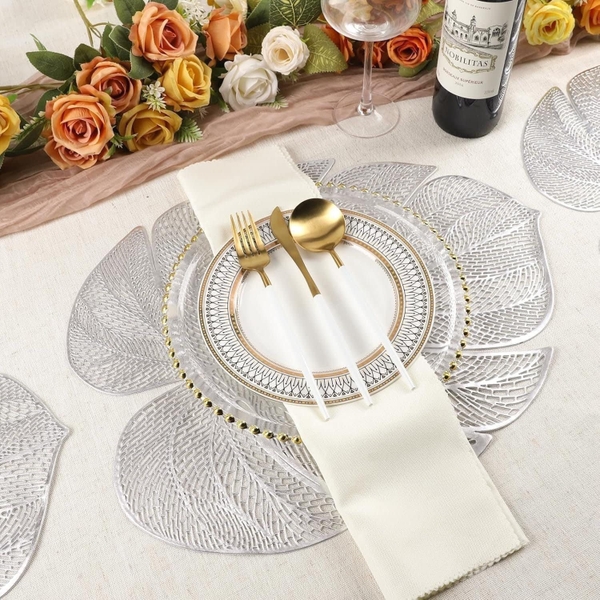 Sét 8 miếng lót bán ăn Evevda hình chiếc lá siêu xinh.tông màu xám đẹp mắt lên đèn siêu nổi ạ