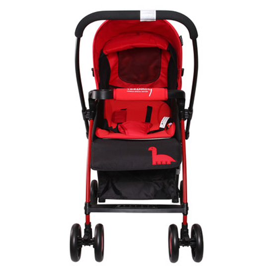 Xe đẩy có màu đỏ tươi trẻ trung, thu hút ánh nhìn của bé. Trên ghế ngồi còn in hình chú khủng long dễ thương, cho bé thêm thích thú khi sử dụng xe.